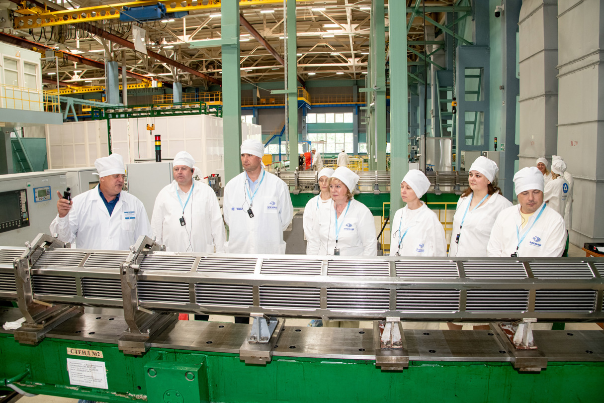В рамках визита коллеги посетили промышленную площадку Машиностроительного завода (АО «МСЗ», входит в Топливную компанию Росатома «ТВЭЛ»). Ознакомились с производственными возможностями АО «МСЗ», посетили цеха по изготовлению тепловыделяющих элементов, тепловыделяющих сборок и комплектующих изделий, а также на базе Центра информации предприятия приняли участие во встрече с генеральным директором АО «МСЗ» Дмитрием Багдатьевым и заместителем генерального директора по управлению персоналом и связям с общественностью АО «МСЗ» Александром Панфиловым.