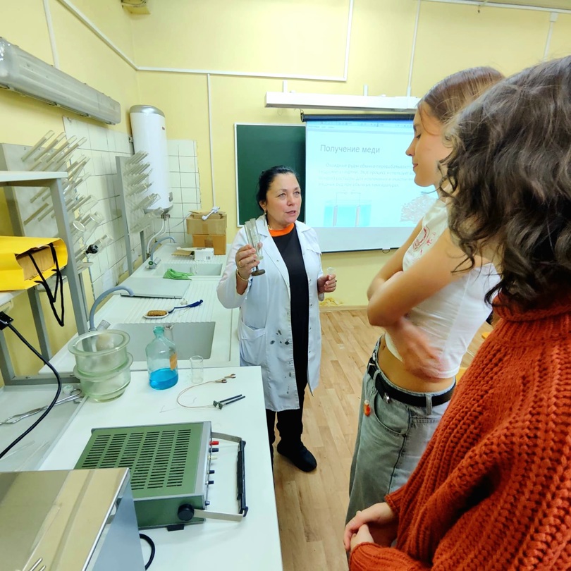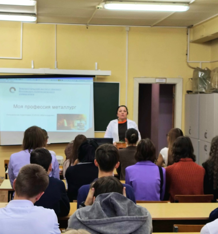 В рамках профориентационных встреч со школьниками г. Электросталь в нашем институте прошел мастер-класс «Моя профессия — металлург». Наш преподаватель, профессор кафедры «Машиностроительные и металлургические технологии», доктор химических наук Подолина Е. А. рассказала о истории развития металлургии и её значении в современном мире. Вместе с ребятами были проведены эксперименты в лаборатории: плавили олово и получали медь методом электролиза. Также ребята узнали о различных способах химической коррозии железа и методах защиты металлов от этого процесса.