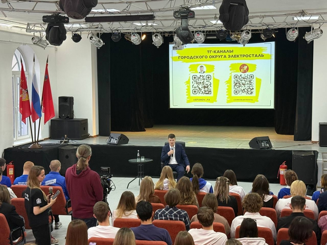 В рамках «Молодежной гостиной» состоялась встреча студенческой молодежи, активистов Движения Первых, членов Молодежного Парламента и волонтеров Подмосковья с главой города Электростали Филиппом Александровичем Ефановым. Мероприятие, организованное с целью стимулирования конструктивного диалога между представителями молодого поколения и органами местного самоуправления, предоставило уникальную платформу для обсуждения актуальных вопросов развития городского округа.В ходе дискуссии участники обменялись мнениями о ключевых аспектах функционирования городской инфраструктуры, особое внимание было уделено вопросам формирования ценностных ориентиров и профессиональных компетенций молодежи.Наши студенты проявили высокий уровень заинтересованности и даже предложили главе города посетить институт с целью дальнейшего обсуждения перспектив сотрудничества и реализации совместных проектов.