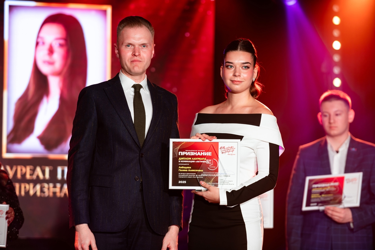 В Молодёжном Центре прошла церемония вручения премии «Признание». За вклад в молодёжную политику городского округа были отмечены активные молодые лидеры. Среди них — наши студенты: Галина Лебедева стала лауреатом, а София Шпак — номинантом в категории «Активист». Также награды получили взрослые лидеры, помогающие молодёжи развиваться в творчестве, спорте, науке и патриотической работе.Мир не стоит на месте, появляются новые идеи и форматы, мероприятия становятся масштабнее. Даже самые смелые замыслы могут стать реальностью, если за ними стоит надёжная поддержка. На премии «Признание» поблагодарили всех, кто помогал реализовывать крупные проекты молодёжной политики города. Наш институт получил Благодарность от Главы, её вручил первый заместитель Главы городского округа Электросталь Вадим Борисович Бахматов, выпускник нашего института.