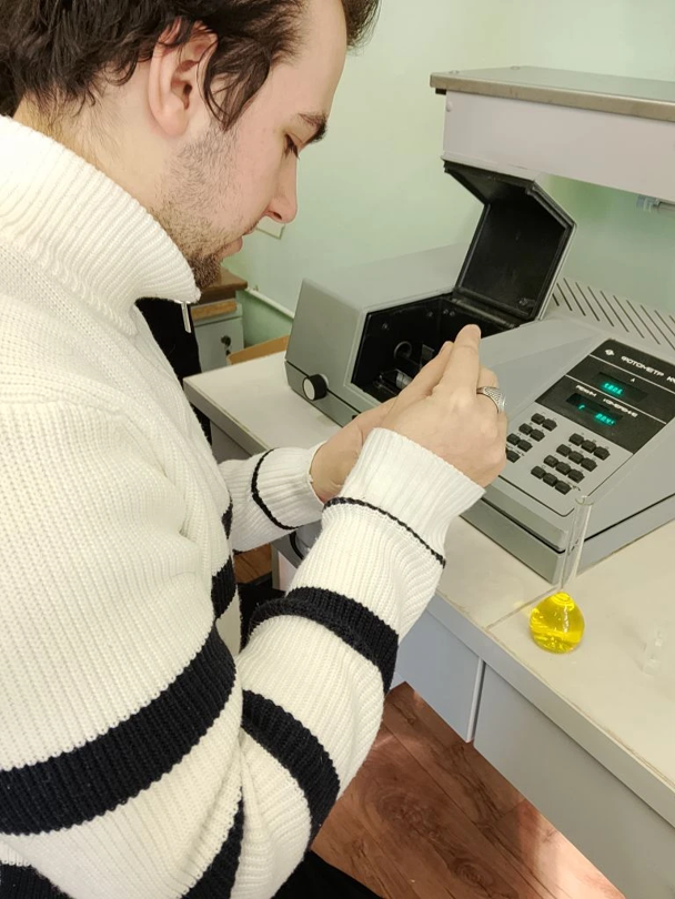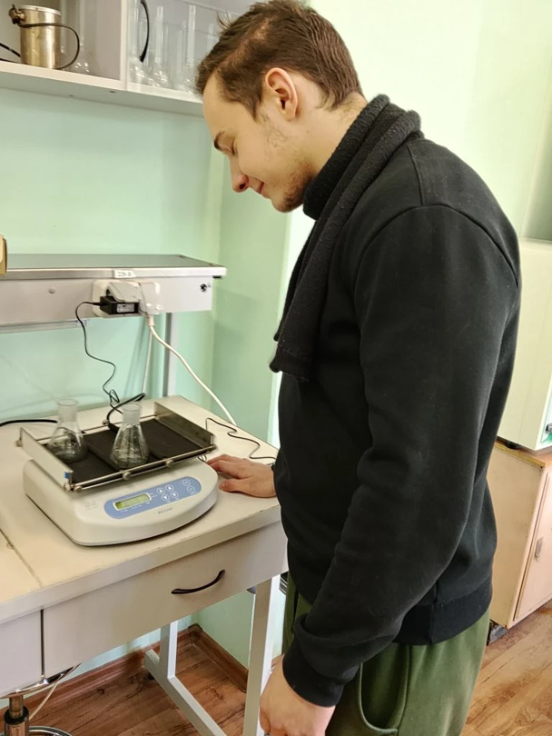 С наступлением весеннего семестра студенты группы 231-Э15 (ДОД-23) приступили к выполнению экспериментальной части научных исследований, направленных на изучение адсорбции фенольных соединений из водных растворов с использованием активного угля ФАС. Предварительно диазотируют водные растворы фенола и измеряют их оптическую плотность с помощью спектрофотометра. Затем активный уголь взвешивают на аналитических весах и осуществляют адсорбцию фенола активным углем в стационарных условиях на вибросмесителе, что позволяет оптимизировать процесс взаимодействия адсорбента и адсорбата.