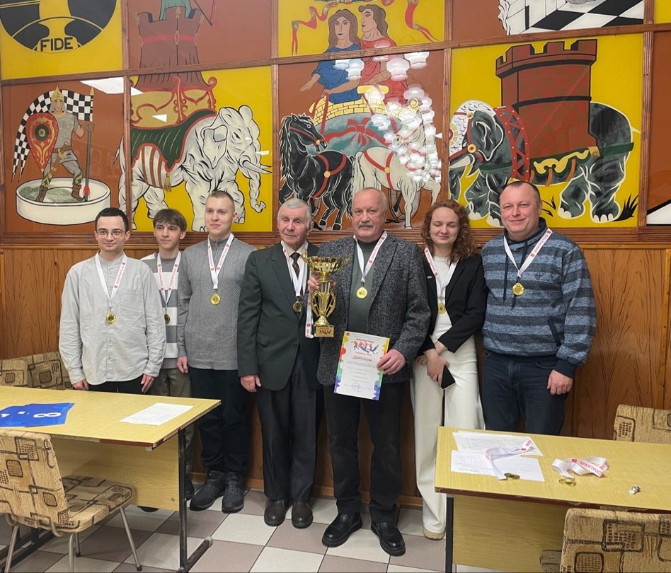 В понедельник 16 февраля в городском клубе “Диагональ” прошло чествование победителей и призёров командного первенства города по шахматам. Председатель клуба Владимир Ильенко назвал его главным событием года. Отметив каждую сборную, а их было восемь, он вручил главные награды лучшим трём.Чемпионский кубок и золотые медали получили шахматисты клуба “Мустанг” Электростальского института Мосполитеха (на фото). Награды за второе место вручены сборной АО “Машиностроительный завод”, за третье – Гимназии № 21.