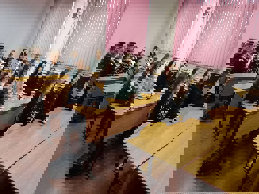 Сегодня на кафедре «Гуманитарные науки и межкультурные коммуникации» прошёл профориентационный урок «Экономика и я: путь к профессии» для учащихся 11 класса лицея №7 г. Электросталь.Зав. кафедрой Т.И. Покровская провела экскурсию по институту, рассказала о его истории. В формате деловой игры ребята познакомились с профессией экономист. В конце встречи будущие абитуриенты получили ответы на интересующие вопросы по приёмной кампании.